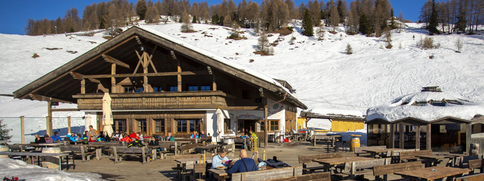 Die Sunnolm ist kuschelig, wie eine sarner Bauernstubm - egal ob in der Gruppe, zu zweit oder allein: hier im Restaurant findet jeder eine gemütliche Ecke. Die großen Tische im Bergrestaurant Sunnolm laden zur Geselligkeit und Kontakt mit Gästen und Einheimischen ein, während die kleinen Tische abseits vom Trubel für eine intimere Atmosphäre auch in trauter Zweisamkeit sorgen. Wenn es das Wetter zulässt steht auch die große Sonnenterrasse zur Verfügung.