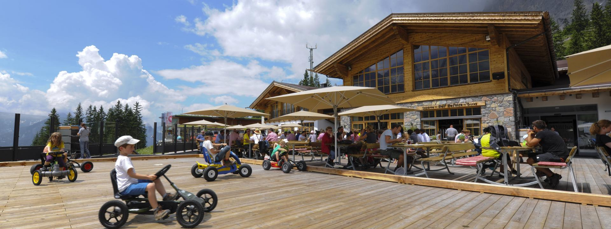 - Große Sonnenterrasse (ca. 550 Sitzplätze im Winter / ca. 220 Sitzplätze im Sommer)