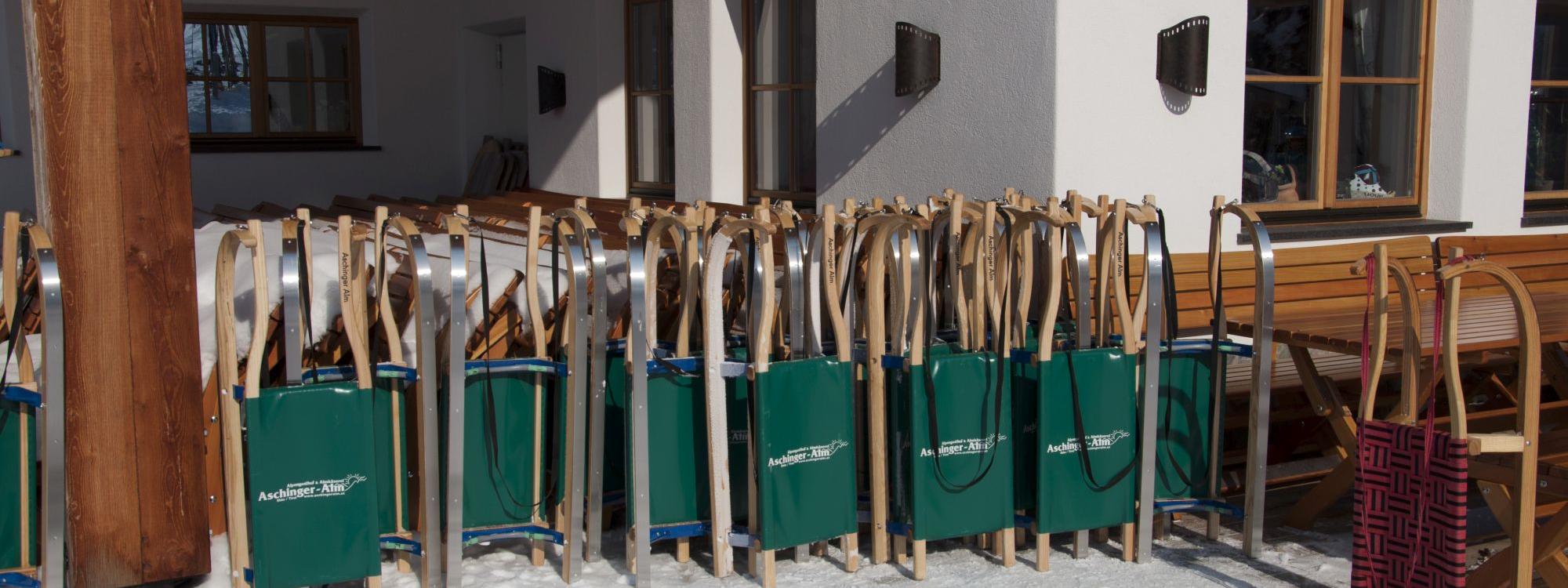 Kostenloser Rodelverleih bei der Aschinger Alm.