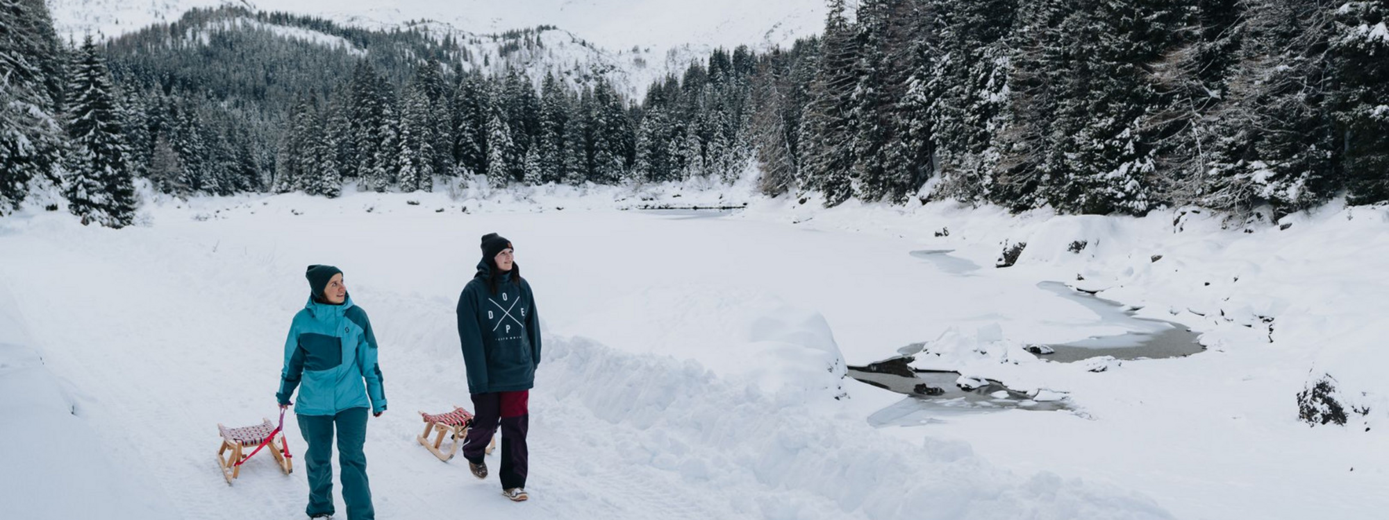 Vom ehemaligen Gasthaus bietet sich links am Seeufer entlang eine Wandermöglichkeit (ohne Rodel) bis zum Seeende mit einem Abstecher zum Seekirchlein in traumhaften Landschaft!