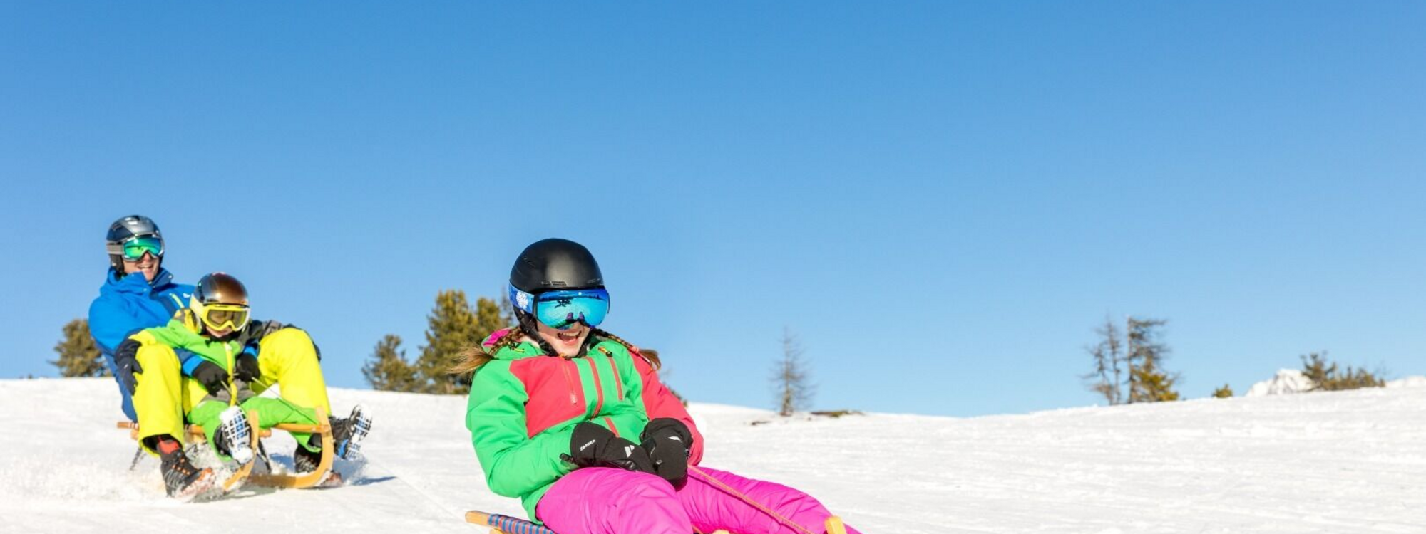 Die Rodelbahn führt vom auf 2020 m hoch gelegenen Gamsstadl bis zum Jacklbauern am Fanningberg auf 1300m.