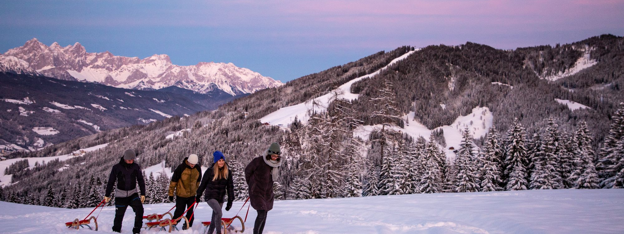 Aufstieg entweder zu Fuß der Rodelbahn entlang oder mit einem der Flachauer Rodeltaxis.
