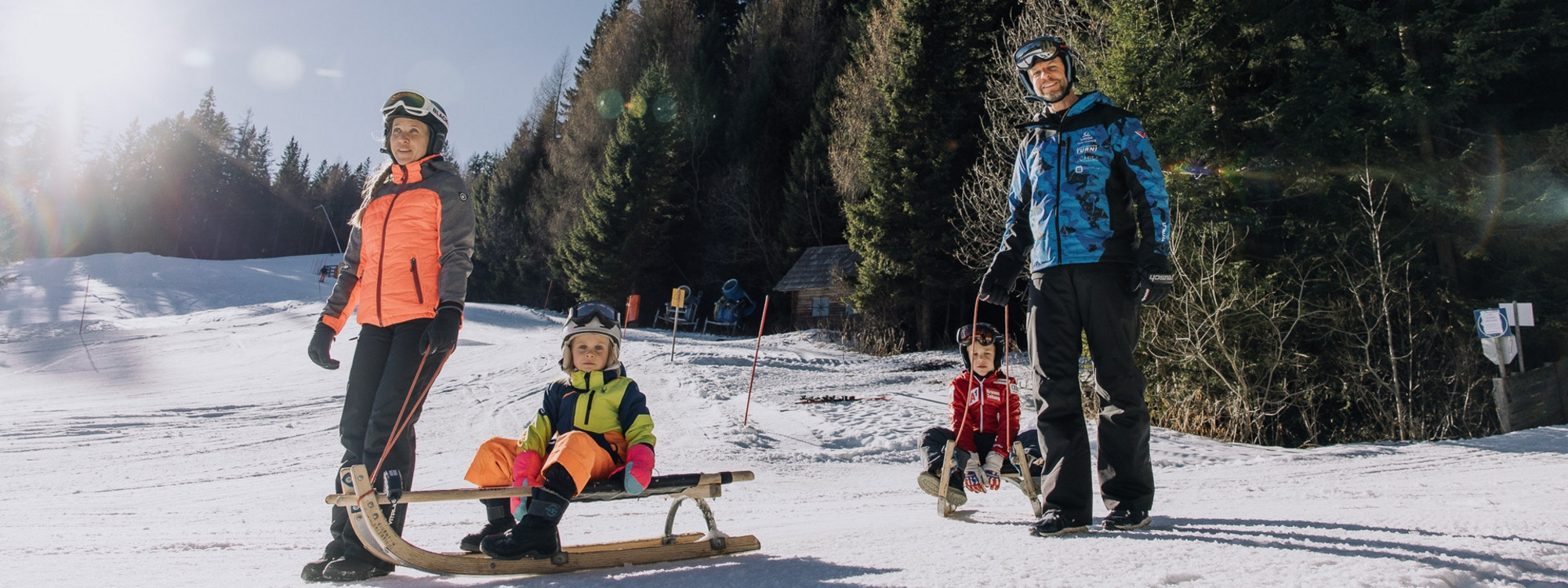 Auf dem großen Parkplatz neben dem Skilift, auf 1.320 Metern Seehöhe, direkt neben der Liftkassa und dem Gasthof Moasterhaus, befinden sich die Rodelhütte sowie die Rodeltaxis.